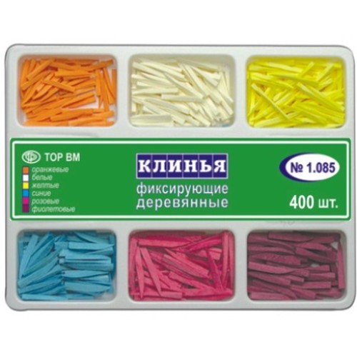 1.085 Клинья деревянные 6-х типов оранж/фиолет/розовые/синие/белые/желтые (400шт), ТОР ВМ / Россия